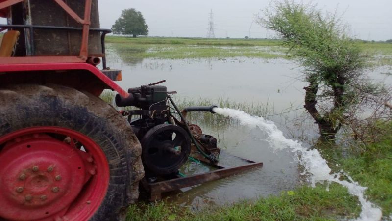 बड़ाखेड़ा. कस्बे सहित आस पास के गाव पापड़ी, जाड़ला, बंसवाडा, काकरामेज, करीरिया, पाली, पीपल्दा थाग, सामरा, नयागांव आदि गावों में दो पहले हुई तेज बारिश के चलते नालों खालों उफान आने से खेतों में पानी भरने से खरीफ की फसल उड़द, मक्का, सोयाबीन, तिल्ली आदि फसलें खेतों में पानी भरने से जलमग्न हो गई। खेतों में पानी भरने से पानी को निकासी का रास्ता नहीं मिलने पर मंगलवार को खेतों में इंजन चला कर खेत का पानी बहकर निकालने में किसान जुटे रहे। खेतों में अधिक पानी भरने से फसलों को नुकसान हुआ है।