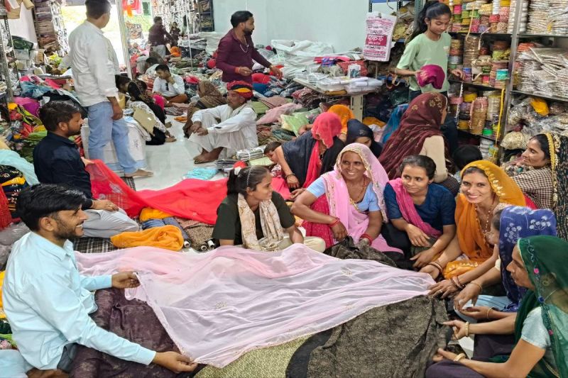 नैनवां। लहंगा-ओढ़नी की खरीदारी करती देहाती महिलाएं