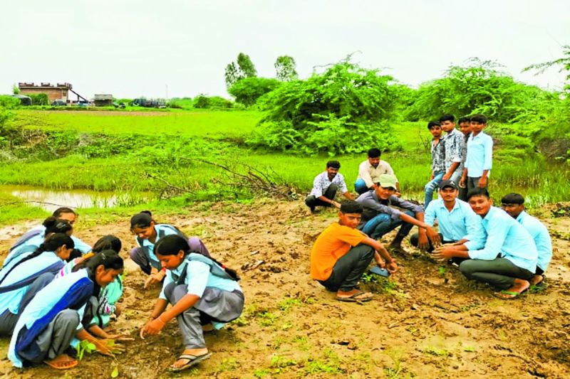 नोताडा. विद्यालय के छात्र छात्र-छात्राओं द्वारा राजस्थान पत्रिका के हरयाळो राजस्थान अभियान के तहत पौधे लगाते हुए।