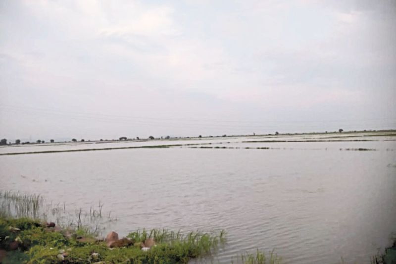 नोताडा क्षेत्र के खेतों में भरा बरसात का पानी (फोटो: पत्रिका)