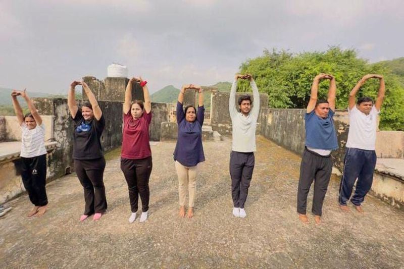 बूंदी. रामगढ़ विषधारी टाइगर रिजर्व के कोर क्षेत्र स्थित महल की छत पर योगासन करते हुए।