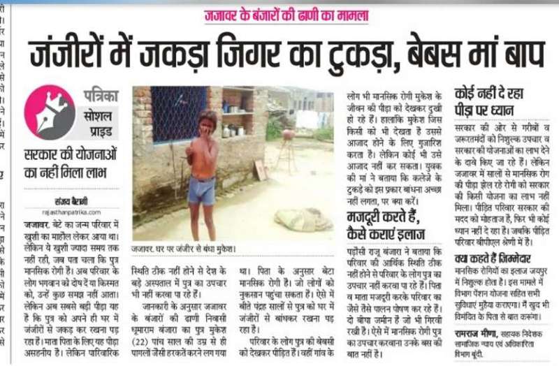 मानसिक रोगी मुकेश व परिजनों की पीड़ा की व्यथा को पत्रिका ने 'जंजीरो में जकड़ा जिगर का टुकड़ा, बेबस मां बाप' से खबर प्रकाशित की थी। वही समय समय पर चिकित्सा विभाग व समाज कल्याण के सर्वे होते रहते हैं।लेकिन अब ऐसे कई मामले है जो दबे हुए। प्रशासन की इतने दिनों में सुध लेना भी कार्यप्रणाली पर सवालिया निशान खड़ा करता है।