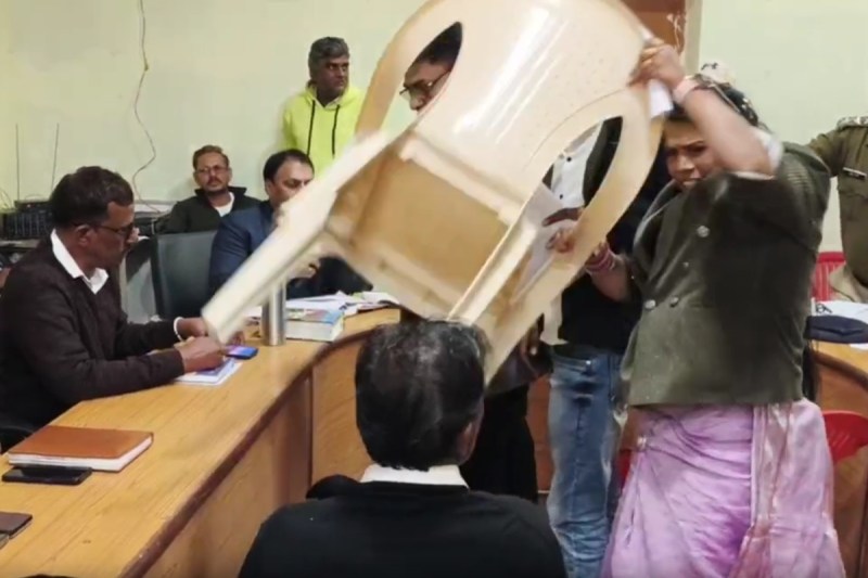 इस पर पंचायत समिति सदस्य सुनीता शर्मा, शैतानसिंह मीणा, जिला परिषद सदस्य शक्तिसिंह आसावत, सरपंच रामलाल पहाड़िया, मेघराज गुर्जर, जगतसिंह नायक, रामप्रकाश नागर सहित सभी जनप्रतिनिधियों ने नायब तहसीलदार के खिलाफ कार्रवाई की मांग करते हुए बैठक में हंगामा कर दिया। हंगामे के बीच पंचायत समिति सदस्य ने कुर्सी उठाकर फेंक दी।