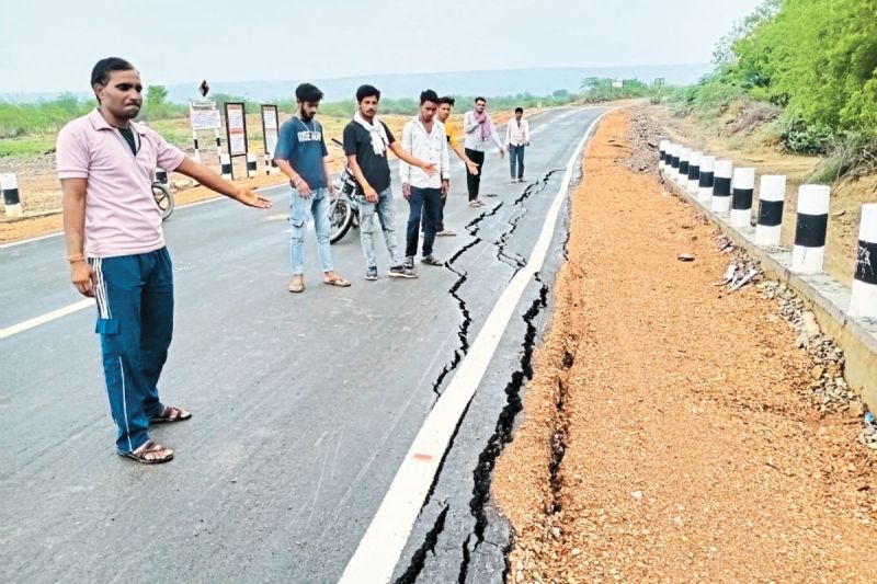 सड़कों में आई दरारें (फोटो: पत्रिका)