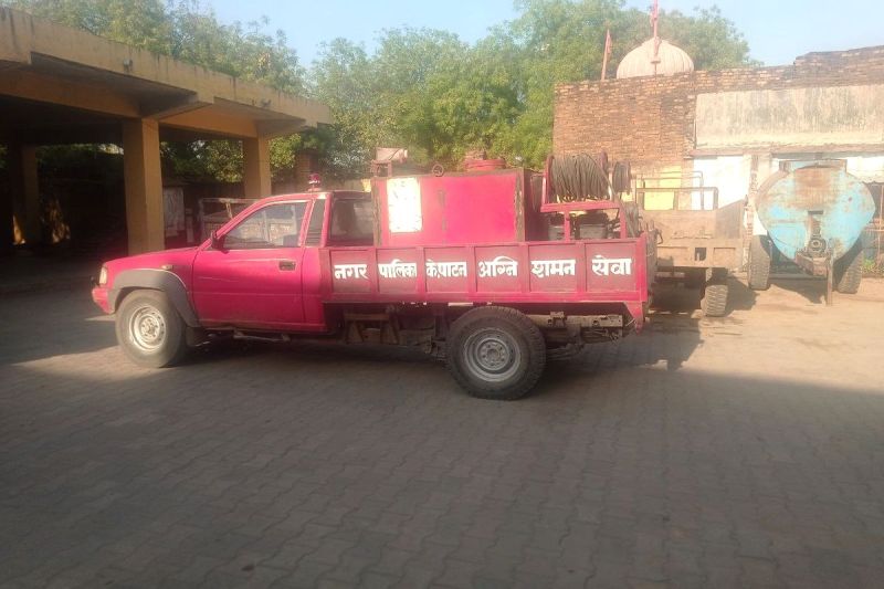 केशवरायपाटन. श्रीराम धर्मशाला में खड़ी छोटी दमकल।