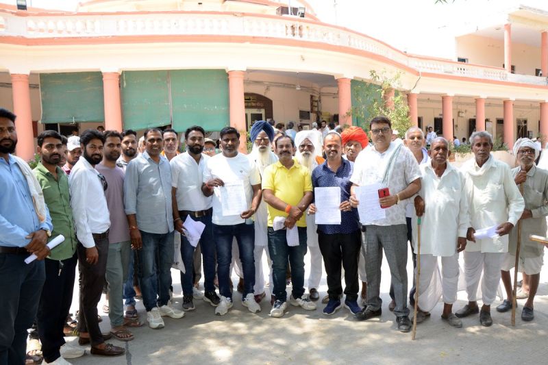 बूंदी जिला कलक्ट्रेट में ज्ञापन देने आए बरुंधन गांव के ग्रामीण।