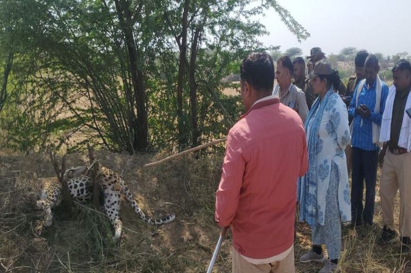नैनवां. खेत की तार फेंसिग में फंसे पैंथर को रेस्क्यू करने की कार्रवाई करते वन्यजीव व वन विभाग की टीमें।