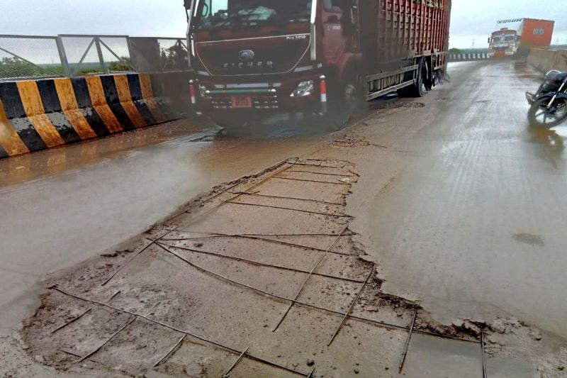 लबान. पापड़ी रेलवे ओवरब्रिज पर निकले सरिए व गड्ढे।