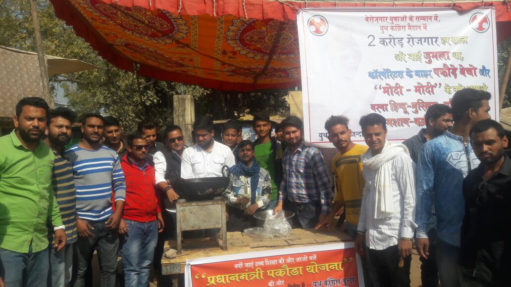 प्रदेश महासचिव जितेन्द्र शर्मा के आव्हान पर कार्यकर्ताओं व शिक्षित बेरोजगार युवाओं ने पकौड़े बेच कर रोजगार ? चलाने व आजीविका कमाने का प्रयास किया। शर्मा ने कहा कि देश के पीएम ने शिक्षित बेरोजगार युवाओं को पकौडे बेचने की सलाह देकर देश के प्रधानमंत्री ऐसा गैरजिम्मेदार बयान देते है। इसका विरोध कांग्रेस युथ करेगी।