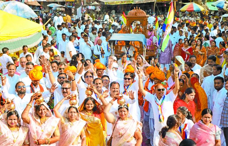 अपरान्ह 1.00 बजे मल्लाहशाह जैन मंदिर से भगवान महावीर स्वामी की मूर्ति को क्वासी द्वारा चंवर ढुलाते इंद्रो की मौजूदगी में रथ में बिठाकर सारथी द्वारा रथ यात्रा का शुभारंभ किया गया। जुलूस का मीरा गेट से चौगान गेट तक ड्रोन द्वारा पुष्प वर्षा कर अनुमोदना की गई।