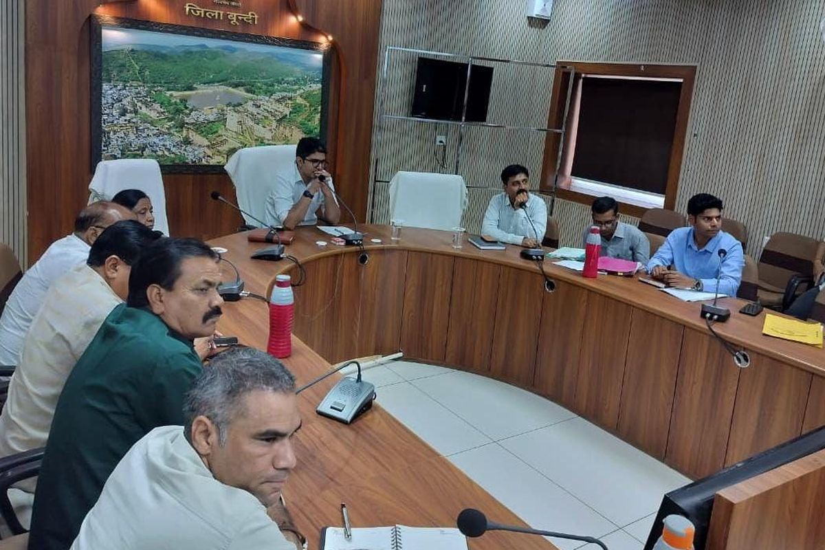 बूंदी. इको-सेंसिटिव जोन के लिए आयोजित बैठक में चर्चा करते जिला कलक्टर व अन्य अधिकारी।