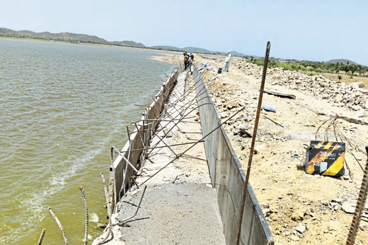 उच्च अधिकारियों से मिले निर्देशों की पालना में पुराने संवेदक को निर्देश देकर करीब सौ फीट से अधिक लंबी पानी की ओर झुकी दीवार को हटाकर वापस पुनर्निर्माण करवाया जा रहा है। मानसून से पूर्व बांध की दीवार का निर्माण कार्य पूरा करने के प्रयास है। सुरक्षा दीवार निर्माण कार्य में संवेदक द्वारा स्टेरिंग सीधी नहीं लगाई, दीवार बनाते समय वाहनों का दबाव का ध्यान नहीं रखा सहित कई तकनीकी खामियां रही।