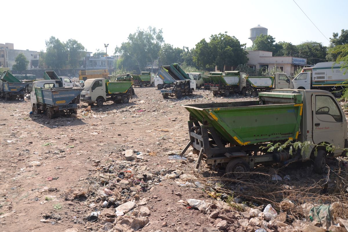 बूंदी के बायपास रोड स्थित ट्रक यूनियन के निकट खड़े ऑटो टीपर।
