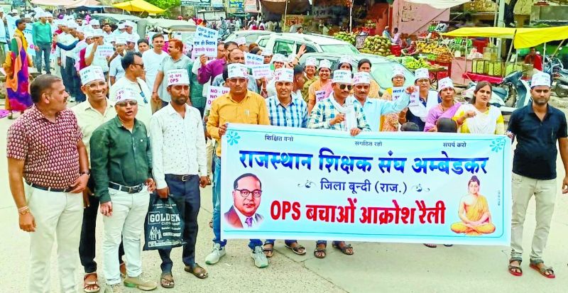 बूंदी. राजस्थान शिक्षक संघ अंबेडकर के कर्मचारी अपनी मांगो को लेकर रैली निकालते हुए।