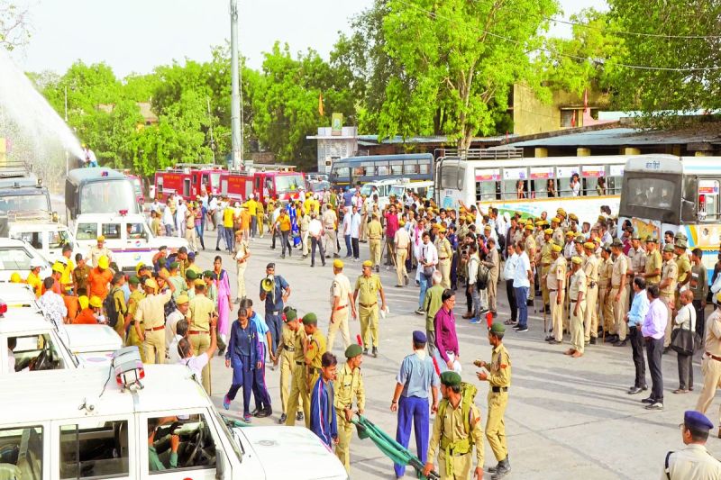 बूंदी. बस स्टैण्ड पर मॉक ड्रिल के दौरान मौजूद प्रशासनिक, पुलिस, चिकित्सा, नगरपरिषद, सिविल डिफेंस, स्काउट व अन्य।