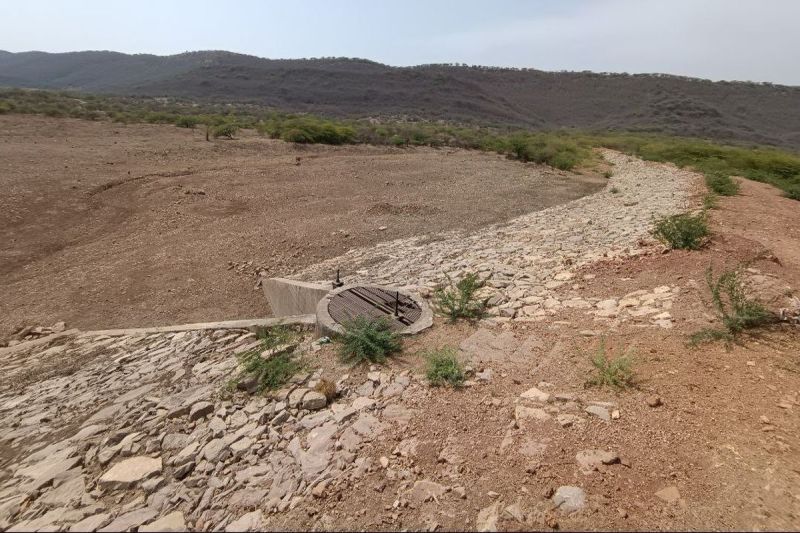 हिण्डोली.सथूर लघु सिंचाई परियोजना का सूखा बांध।