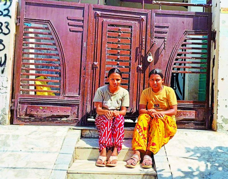 बूंदी. मकान के बाहर बैठी छात्राएं