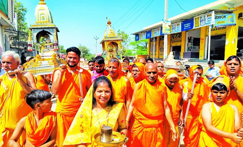 यहां से श्रीजी की तीनों प्रतिमाओं को अलग-अलग पालकियों मे विराजमान करके नगर भ्रमण कराया। तथा बाद में भगवान की प्रतिमाओं को दिगंबर जैन मंदिर में विराजमान किया। नगर भ्रमण के दौरान महिलाएं जैन भजनों पर नाचते गाते हुए चल रही थी। जगह-जगह श्रद्धालुओ ने शोभायात्रा की अगवानी की।