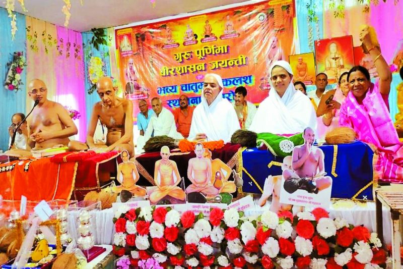 महाराज ने अपने प्रवचन के दौरान चार महिने के धर्म प्रभावना पर प्रकाश डाला। उन्होंने कहा कि मंगल कलश स्थापना चातुर्मास का एक महत्वपूर्ण हिस्सा है। जिसमें भक्तों द्वारा कलशों को जिन मंदिर में स्थापित किया जाता है। भक्तों को धर्म,ज्ञान और त्याग का उपदेश देते हैं।