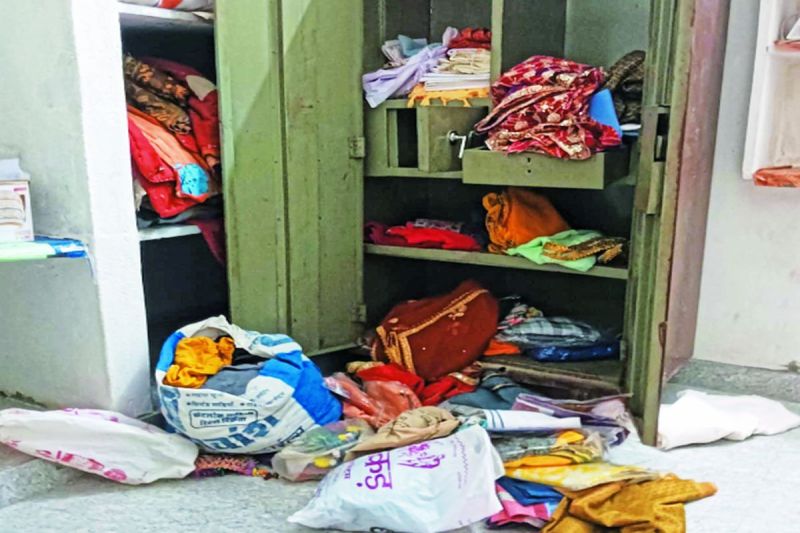 नैनवां। मानपुरा गांव में चोरी की वारदात के बाद कमरे में खुली पड़ी आलमारी व बिखरा पड़ा सामान।