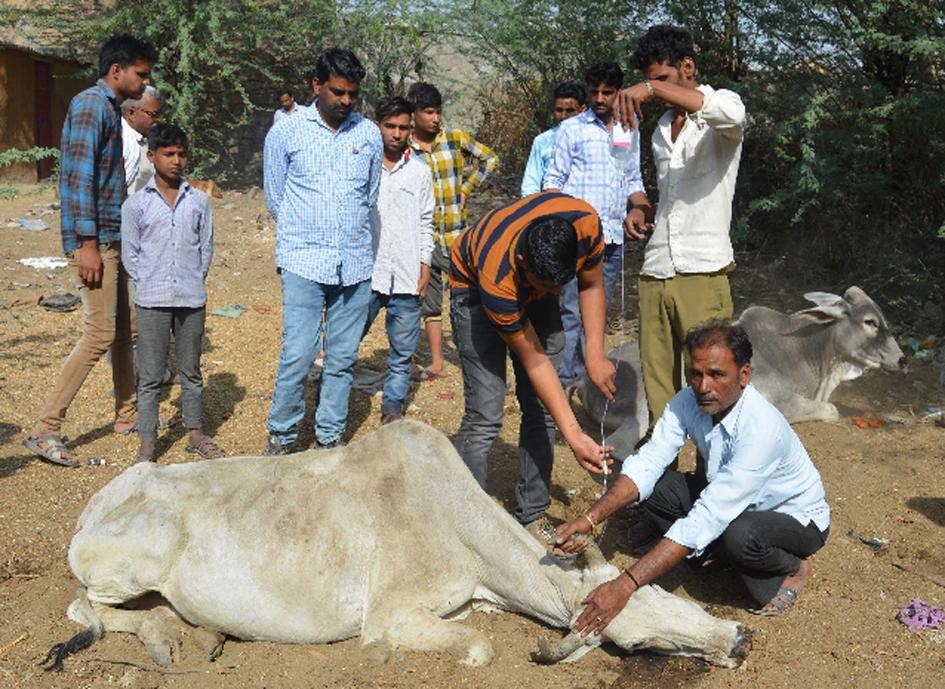 प्राप्त जानकारी के अनुसार रविवार सुबह गांव में दो स्थानों पर मुंह में झाग आकर तीन पशुधन की मौत होने व आधा दर्जन पशुधन तड़पते नजर आए तो पशुपालन विभाग व पुलिस को सूचना दी गई।
