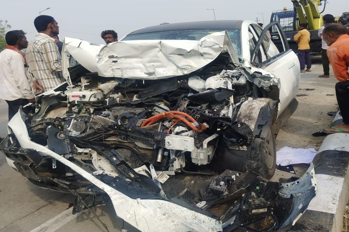 रामगंजबालाजी नमाना रोड पर हुई सडक़ दुर्घटना में क्षतिग्रस्त कार।