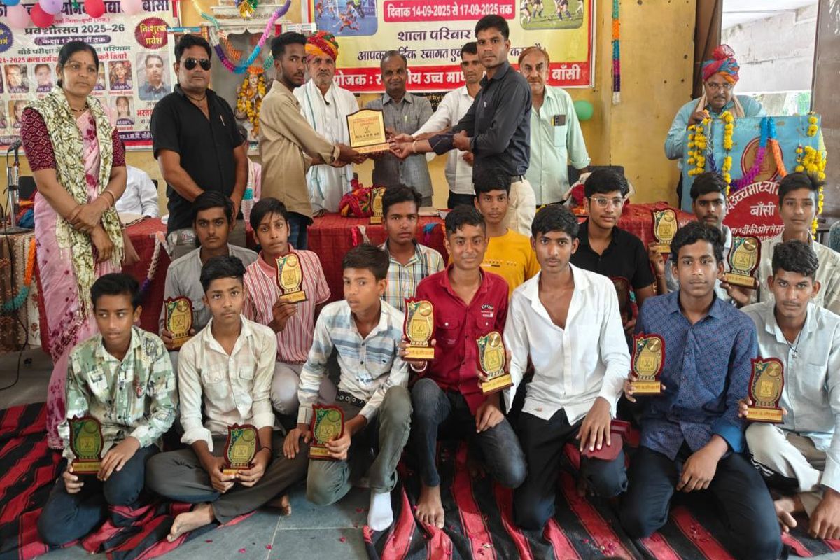 देई.कस्बे मे स्थित महात्मा गांधी राजकीय विद्यालय नवीन देई के खिलाडियो को पुरस्कार सौंपते हुए।
