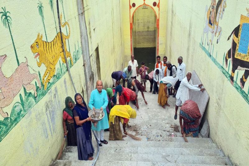 हिण्डोली. बड़ोदिया में कालाजी की बावड़ी में श्रमदान करते हुए।