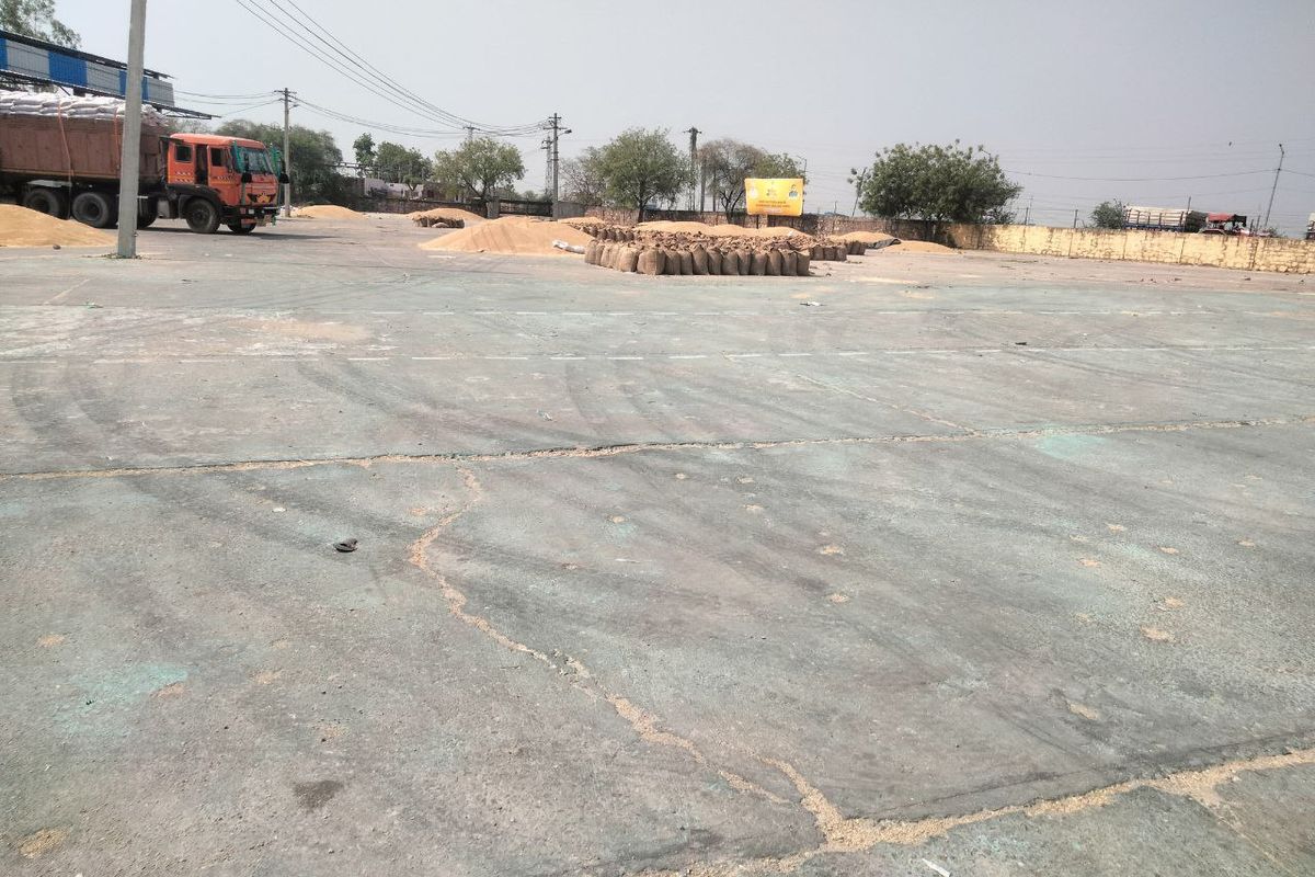 कापरेन एफसीआई के गेंहू खरीद केंद्र पर बारदाना खत्म होने से खाली पड़ा मंडी परिसर