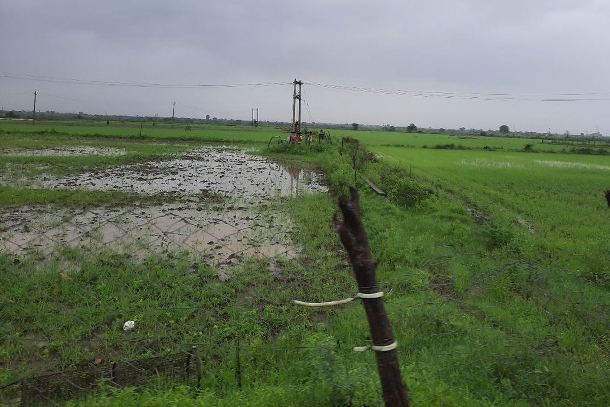 बड़ाखेड़ा. माखीदा सड़क पर खेतों में अभी तक पानी भरा हुआ है।