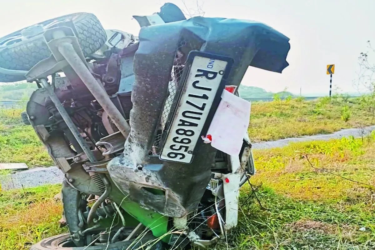 कार्यवाहक थानाधिकारी कन्हैयालाल ने बताया कि छोटुलाल गुर्जर निवासी नावड़, गिरिराज नाथ निवासी रामलपुरा, मानङ्क्षसह योगी, शिवचरण योगी, विकास योगी निवासी डींगों व जयकिशन गुर्जर निवासी रामङ्क्षसहपुरा लालसोट अपने अपने गांव से उज्जैन दर्शन करने के लिए रात्रि को जीप में सवार होकर निकले थे। दिल्ली मुम्बई एक्सप्रेस वे पर लबान टोल से आगे चहींचा गांव के निकट मेज नदी पुलिया के आसपास सडक़ पर जंगली सुअर आ जाने से उसे बचाने के चक्कर में गाड़ी अनियंत्रित होकर पलट गई।