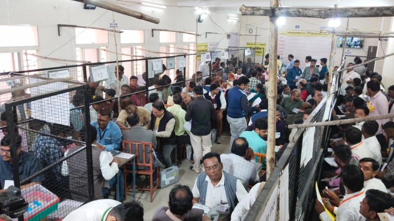 मतगणना स्थल पर कडी सुरक्षा के बाद प्रत्याशियों के अभिकर्ताओं को प्रवेश