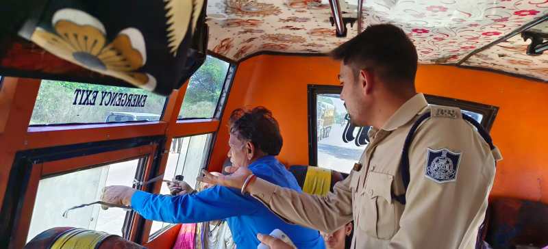 एसआइ नवाब अली ने बताया कि 15 बसों की जांच करने पर 9 बसों में खामियां मिली। इमरजेंसी गेट जाम होने के कारण समय पर खुले नहीं। बसों में इमरजेंसी गेट के पास रस्सी बंधकर रखी गई थी। परिचालक से गेट खुलवाए गए तो उन्हे भी काफी समय लगा। फस्र्ट एड बॉक्स नहीं लगे होने के साथ जिन बसों में बॉक्स लगे थे, लेकिन मेडिकल का सामान नहीं मिला। छोटी बड़ी खामियां मिलने पर चालक को सुधार करने के लिए समझाइश दी गई। पुलिस ने 9 बसों पर कार्रवाई करते हुए 7 हजार की राशि का जुर्माना लगाया।
