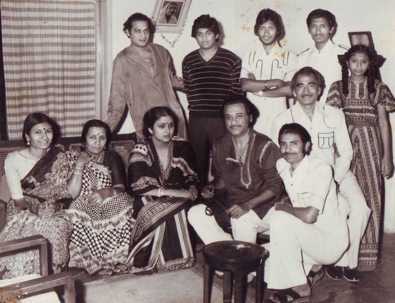किशोर दा खंडवा के अपने पैत्रक निवास गौरी कुुंज पर अपने मित्र रामअवतार चौरसिया के परिवार के साथ।