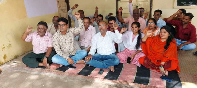 Officers and employees sat on strike in the premises after closing the office and expressed their protest by raising slogans.