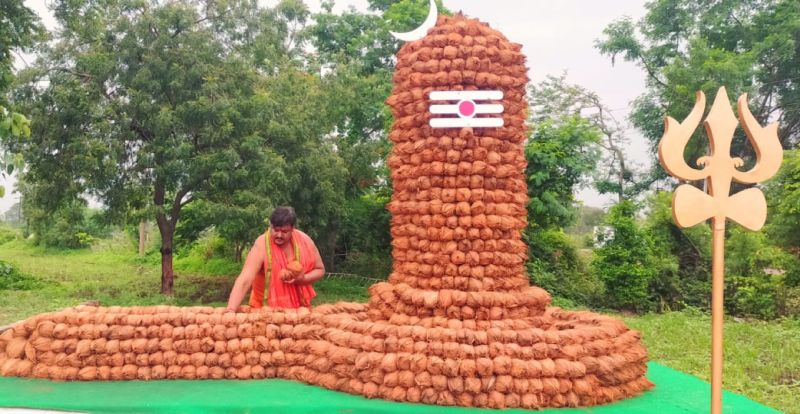 बुरहानपुर. 19 वर्षों बाद श्रावण अधिक मास के दुर्लभ संयोग में शिवधाम बहादरपुर में लगभग 2500 नारियलों से शिवलिंग का निर्माण किया गया है। जिसकी आराधना प्रारंभ हुई, जो एक माह तक चलेगी। जिसमे सैकड़ों भक्त आकर दर्शन लाभ लेंगे।