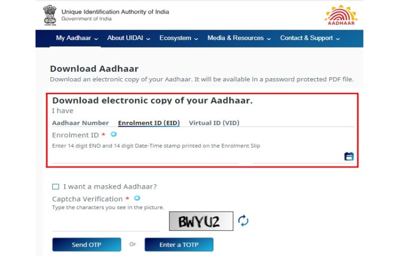 दोबारा ऐसे प्राप्त करें आधार नामांकन आईडी:—