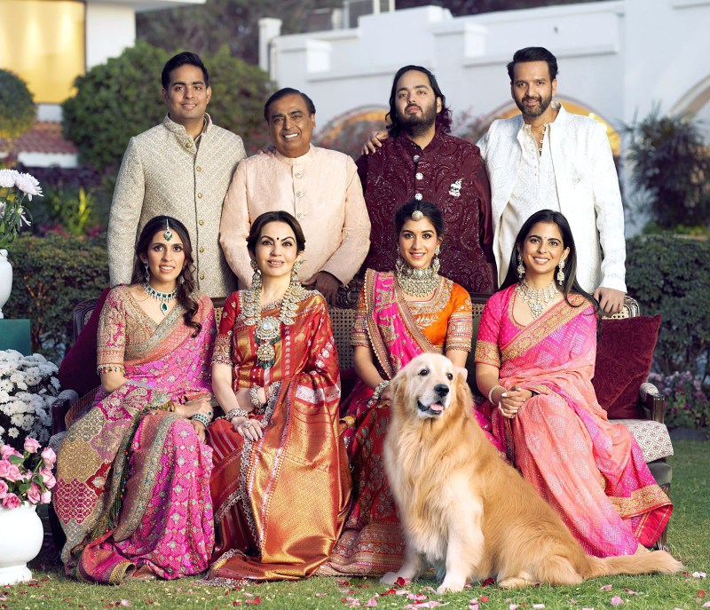 मुकेश अंबानी अपने बेटों अनंत और आकाश व दूसरे सदस्यों के साथ। ANI