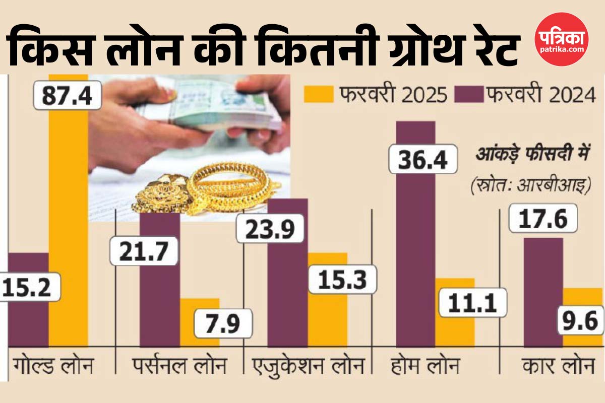 एक साल पहले फरवरी 2024 यह आंकड़ा 1.02 लाख करोड़ रुपए था और इसकी वृद्धि दर भी केवल 15.2% थी। आरबीआइ के मुताबिक, फरवरी में पर्सनल लोन की वृद्धि 19% रही। यह दर्शाता है कि आर्थिक दबाव या तुरंत नकदी की जरूरत के चलते लोग अधिक मात्रा में सोना गिरवी रखकर लोन ले रहे हैं।