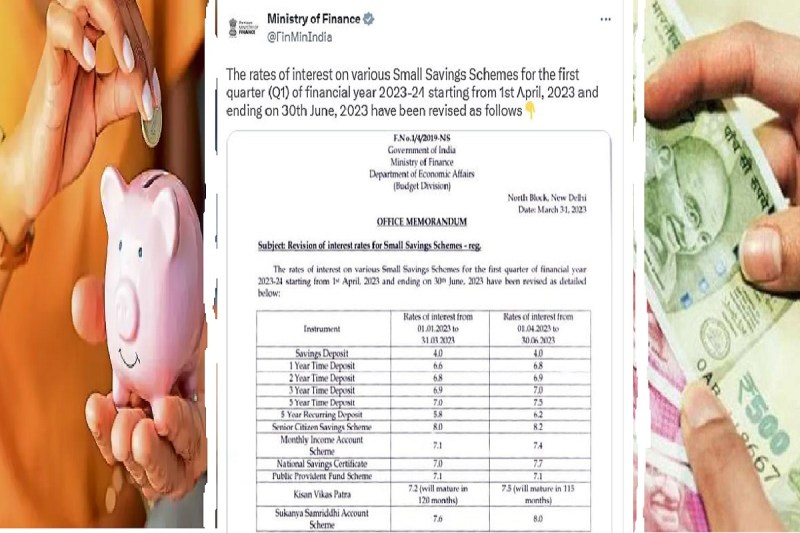 खुशखबर। छोटी बचत योजनाओं में निवेश करने वालों के लिए केंद्र सरकार ने एक बड़ा तोहफा दिया है। 1 अप्रैल से नया वित्त वर्ष 2023-24 शुरू होने जा रहा है। केंद्र सरकार के वित्त विभाग ने ने सुकन्या समृद्धि योजना से लेकर नेशनल सेविंग सर्टिफिकेट, किसान विकास पत्र, पोस्ट ऑफिस की बचत योजनाओं और सीनियर सिटीजन सेविंग स्कीम में निवेश करने वालों की ब्याज दरें बढ़ा दी है। वित्त वर्ष 2023-24 की पहली तिमाही अप्रैल से जून के लिए इन बचत योजनाओं के ब्याज दर में 10 से 70 बेसिस प्वाइंट की बढ़ोतरी की गई है। हालांकि पीपीएफ के ब्याज दरों में कोई बदलाव नहीं किया गया है। पीपीएफ ब्याज दर को 7.1 फीसदी पर बरकरार रखा है। ऐसी उम्मीद की जा रही है कि, 6 अप्रैल को एक बार फिर आरबीआई ब्याज दरों में बढ़ोत्तरी करने जा रहा है। इससे पहले आरबीआई ने लगातार छठी बार फरवरी 2023 में ब्याज दरों में बढ़ोतरी की थी। इन योजनाओं को जनता में और लोकप्रिया करने के लिए ब्याज दरें बढ़ाना जरुरी हो जाता है।