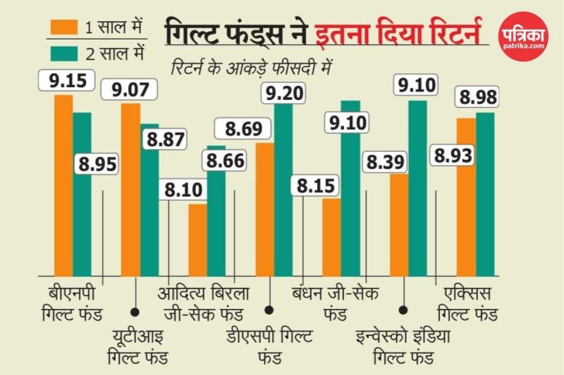 गिल्ट फंड्स के लिए अपने एसेट का कम से कम 80% जी-सेक में निवेश करना जरूरी है। भारत में दरों में कटौती होने पर गिल्ट फंड का आकर्षण और बढ़ सकता है। ये स्कीमें ब्याज दर के प्रति संवेदनशील होती हैं। दरों में गिरावट के माहौल में ये स्कीमें अच्छा रिटर्न देती हैं। लेकिन ब्याज दरों के बढ़ते ही इन्हें नुकसान होता है। एक साल में सभी गिल्ट फंड्स ने 8% से भी अधिक रिटर्न दिया है, जबकि एक साल के बैंक एफडी में अधिकतम 6.5% रिटर्न मिल रहा।