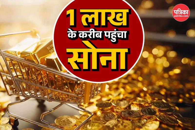 देश में सोने की कीमतें रिकॉर्ड ऊंचाई पर पहुंच गई हैं और एक लाख रुपये प्रति 10 ग्राम के करीब हैं। सोमवार को हाजिर में सोना स्टैंडर्ड 1100 रुपए उछलकर 99 हजार रुपए प्रति दस ग्राम हो गया, वहीं चांदी 700 रुपए चढ़कर 99 हजार रुपए प्रति किलो ग्राम रही।