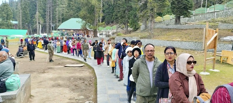 Not scared of the Pahalgam terrorist attack, tourists in line to get the tickets for taking a ride on Gondola in picturesque Gulmarg in North Kashmir, on Friday. File Pic -UNI