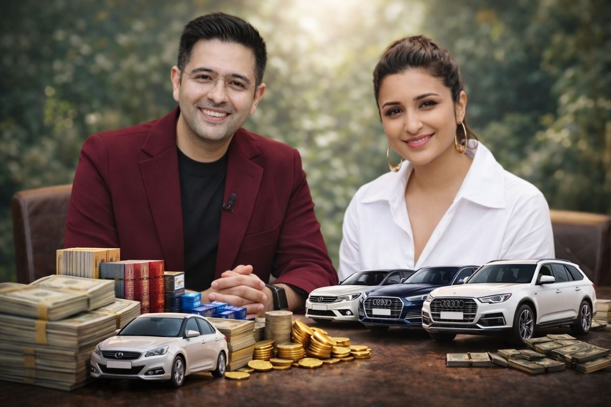 उधर परिणीति चोपड़ा की अनुमानित संपत्ति 74 करोड़ रुपये है। बांद्रा में 22 करोड़ का घर है। गाड़ियों में Range Rover Vogue, Audi Q4 और Audi Q7 हैं। फोर्ब्स इंडिया की सेलिब्रिटी 100 लिस्ट में इनका नाम रह चुका है और एक समय सालाना कमाई 5.36 करोड़ आंकी गई थी। यानी पत्नी की संपत्ति पति से करीब 150 गुना ज़्यादा है।