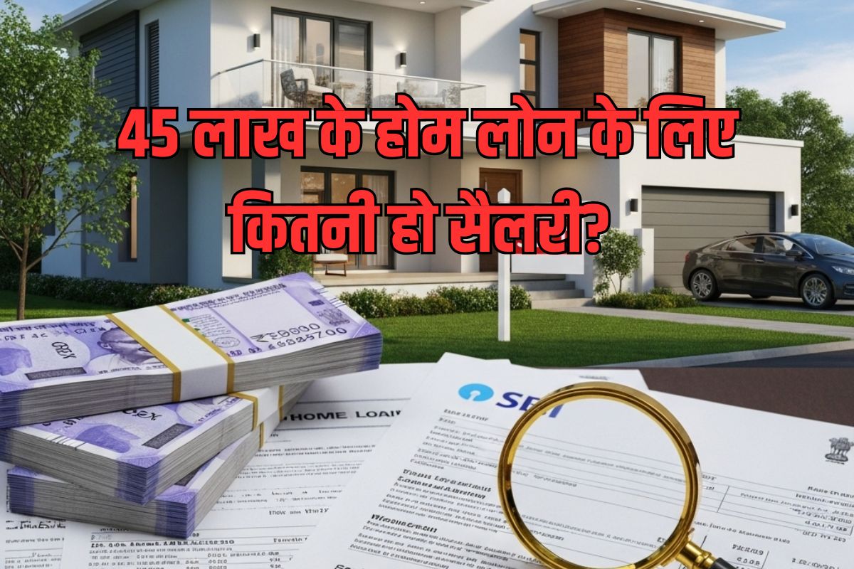 अगर आप एसबीआई से 7.50 फीसदी रेट पर 30 साल के लिए 45 लाख का होम लोन लेना चाहते हैं, तो आपकी न्यूनतम मंथली सैलरी 62,930 रुपये होनी चाहिए। यह लोन आप 25 साल के लिए लेते हैं, तो आपकी न्यूनतम सैलरी 66,510 रुपये होनी चाहिए। वहीं, आप 20 साल के लिए यह लोन लेते हैं, तो आपकी न्यूनतम सैलरी 72,504 रुपये होनी चाहिए। यहां शर्त यह है कि आपके पास पहले से कोई दूसरा लोन नहीं हो।