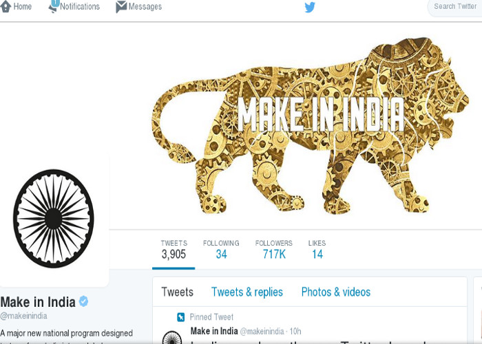 सोशल नेटवर्किंग साइट 'ट्विटर' ने केंद्रीय वाणिज्य एवं उद्योग मंत्री निर्मला सीतारमण की मौजूदगी में बुधवार को प्रधानमंत्री नरेंद्र मोदी के महत्वाकांक्षी 'मेक इन इंडिया' कार्यक्रम के लिए एक विशेष 'ईमोजी'(संकेतक) जारी किया।