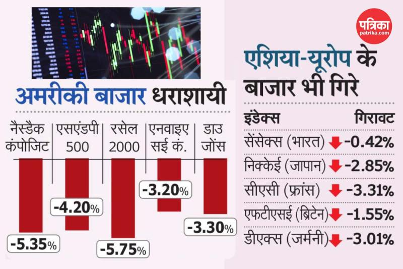 हालांकि ट्रंप टारिफ से ट्रेड वॉर शुरू होने की आशंका, अमेरिका में महंगाई बढऩे का डर और आर्थिक मंदी आने की आशंका से अमरीकी शेयर बाजार धराशायी हो गए। अमेरिकी शेयर बाजार में 5 प्रतिशत तक गिरावट आई, जिससे अमरीकी शेयर बाजार निवेशकों के 2 ट्रिलियन डॉलर से भी अधिक डूब गए।
