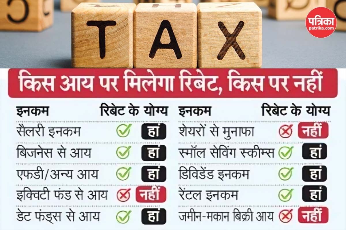 > कुल आय 12 लाख रुपए से कम या बराबर है और करदाता नई कर व्यवस्था को चुनता है। पुरानी कर व्यवस्था चुनने पर लाभ नहीं मिलेगा।