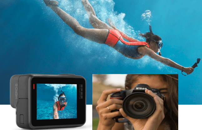 एडवेंचर के शौकिनों के लिए गोप्रो कैमरा सबसे फेवरेट है। बेहतर विडियो क्वॉलिटी और आसान शेयरिंग और काफी काफी कॉम्पेक्ट होने की वजह से इन कैमरों की मार्केट में जबरदस्त मांग है। यह कैमरा एक्शन, रोमांच, वॉटर-डस्ट प्रूफ होने की वजह से यह ऑल वेदर में काफी पॉपुलर हो रहा है। इस छोटे से कैमरे में 60fps के साथ 4K विडियो शूट करने की क्षमता है। इसमें 1080p रेजोल्यूशन पर 240fps की स्पीड के साथ सुपर स्लो मोशन विडियो शूट किए जा सकते हैं। यह लो लाइट में भी अच्छी परफॉरमेंस देने वाला है।