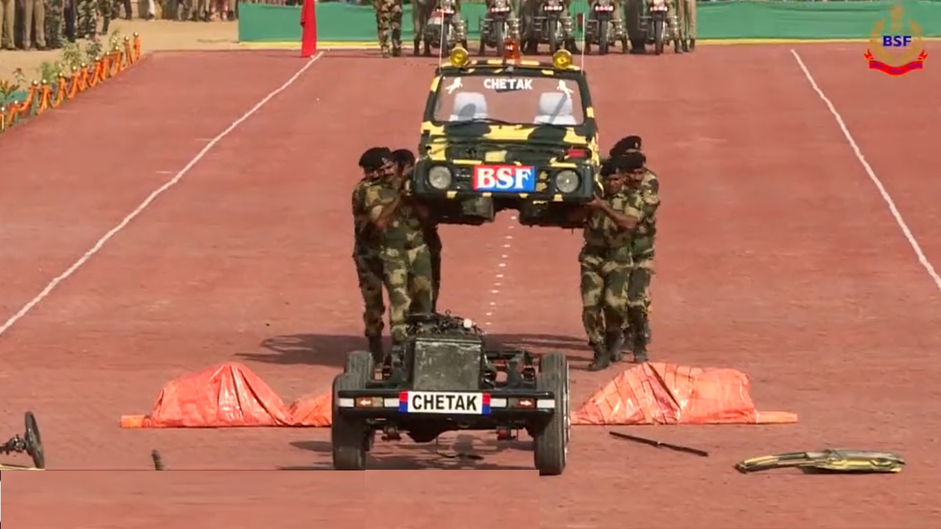 इस कार्यक्रम के दौरान ड्रिल करते हुए सीमा सुरक्षा बल जवानों के सामने कुछ पत्थर आ जाते हैं, जिसके बाद Gypsy पे सवार वाहन से उतार जाते हैं। वाहन से नीचे उतरकर जवान फटाफट जिप्सी को डिस्मेंटल (एक-एक पार्ट अलग करना) शुरू कर देते हैं, और फिर वाहन के चेचिस को उठाकर पत्थर पार करने के बाद दुबारा असेंबल कर देते हैं। दिलचस्प बात ये है कि इस पूरी प्रक्रिया में उन्हें महज 1 मिनट 57 सेकेंड का समय लगता है।